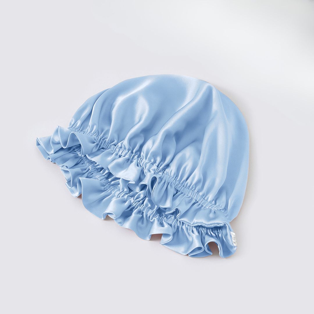 Un bonnet en soie de mûrier 100% naturelle, double épaisseur : il préserve l’hydratation, limite les frisottis et conserve la brillance de vos longueurs.